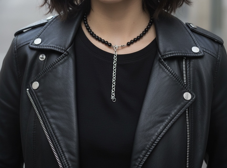 Material: Obsidian pärlor, rostfritt stål