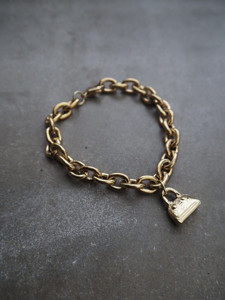Armbandet My Bag- ett lekfullt och snyggt armband som kan användas dagligen. Fäst låset vart du vill i kedjan efter just din handled, så passar det perfekt. My Bag är fint att bära solo eller mixa med andra armband. Matcha med örhängena Glam spikes Gold