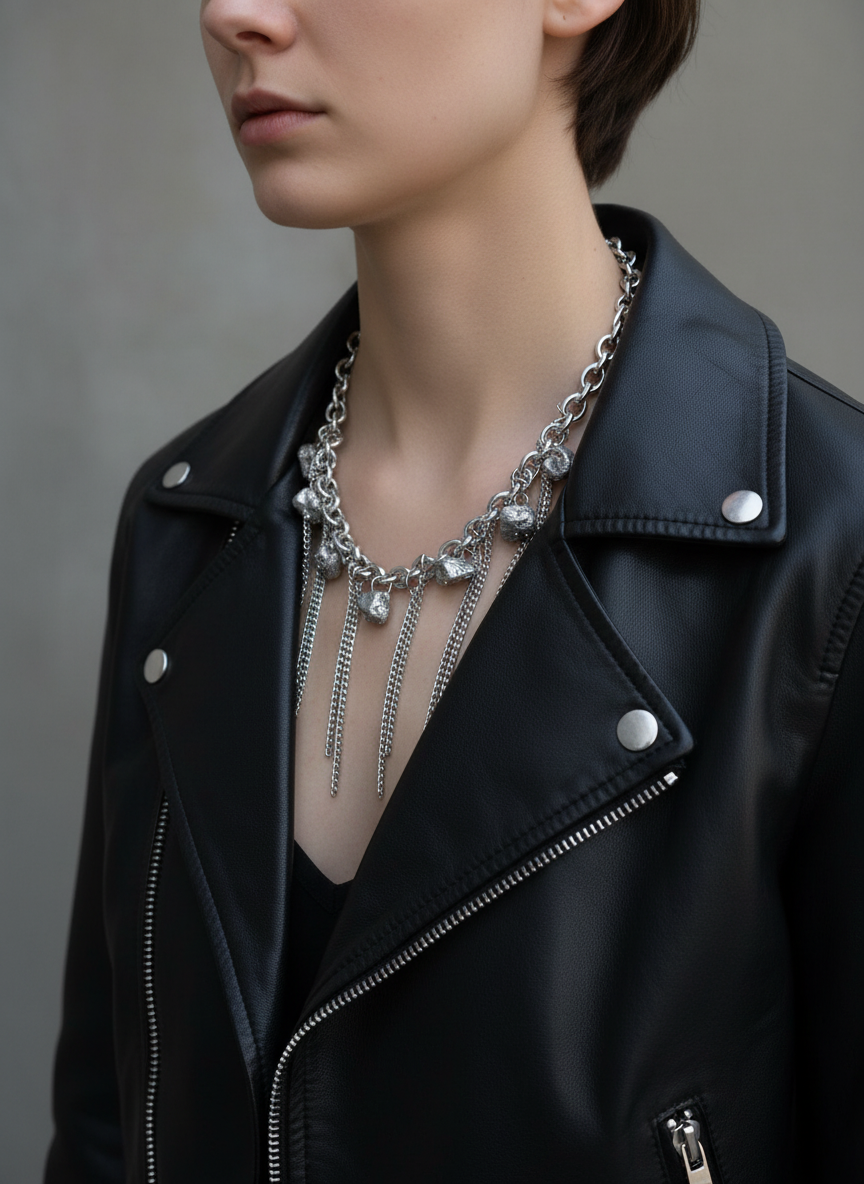 Halsbandet RAW Stones– i silverversion är rå energi i sin kallaste form.