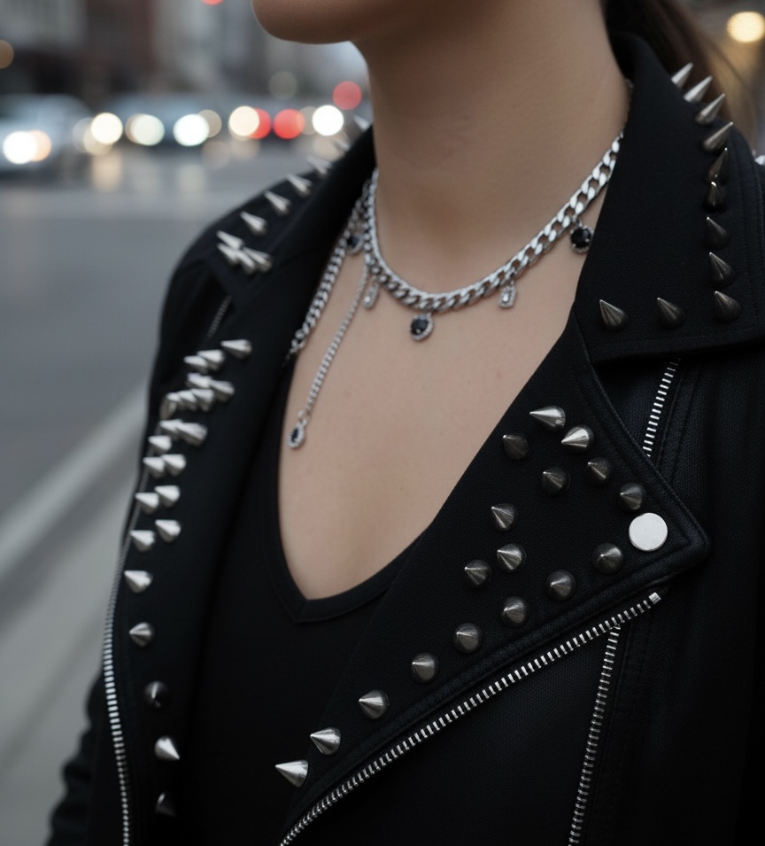 Tough Love Black – edgy statement-halsband Material: Rostfritt stål, mässing, Rhodiumpläterat hjärta, Cubic Zirconia Längd: Ca